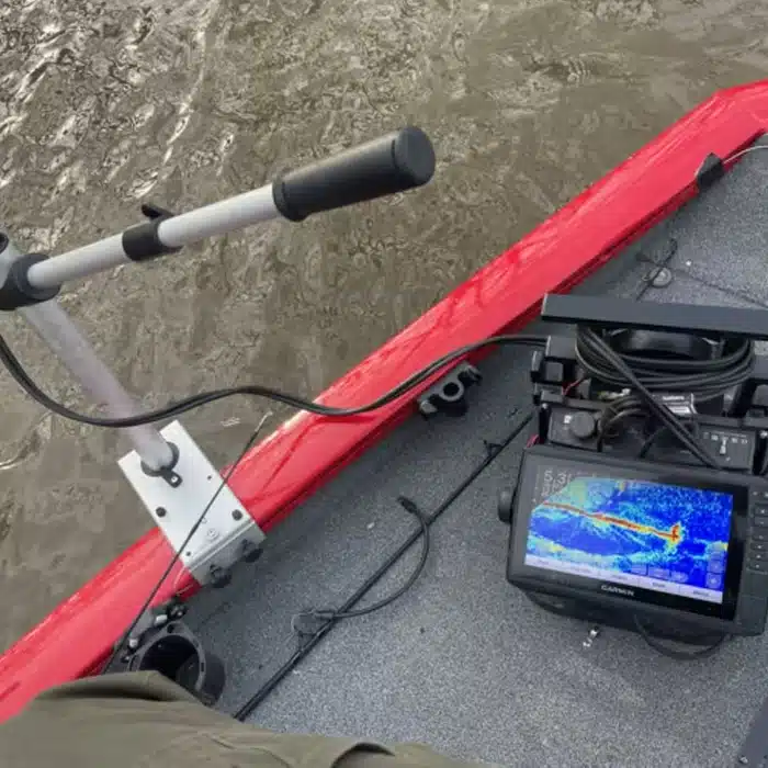 The Alumacraft boat custom downrod transducer mount is a versatile and essential accessory for any angler. This specialized mount allows for the secure installation of a transducer on the bow of a Alumacraft boat, ensuring accurate sonar readings and optimal fishing performance. The transducer downrod is designed to extend below the waterline, providing clear and uninterrupted sonar signals. This is particularly important when navigating in shallow or weedy waters, where traditional transducer mounts may be obstructed. The transducer mount is custom-fit to the Alumacraft boat, ensuring a seamless installation and maximum durability. With the Alumacraft boat custom downrod transducer mount, anglers can confidently explore any fishing spot and rely on accurate and reliable sonar readings.