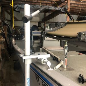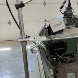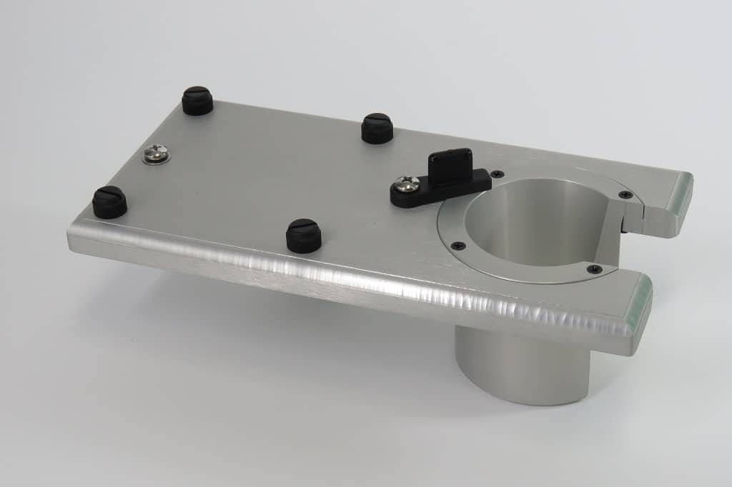 Thick anodized aluminum plate for corrosion resistance in marine environments. It’s rigid and provides a strong, metallic foundation.